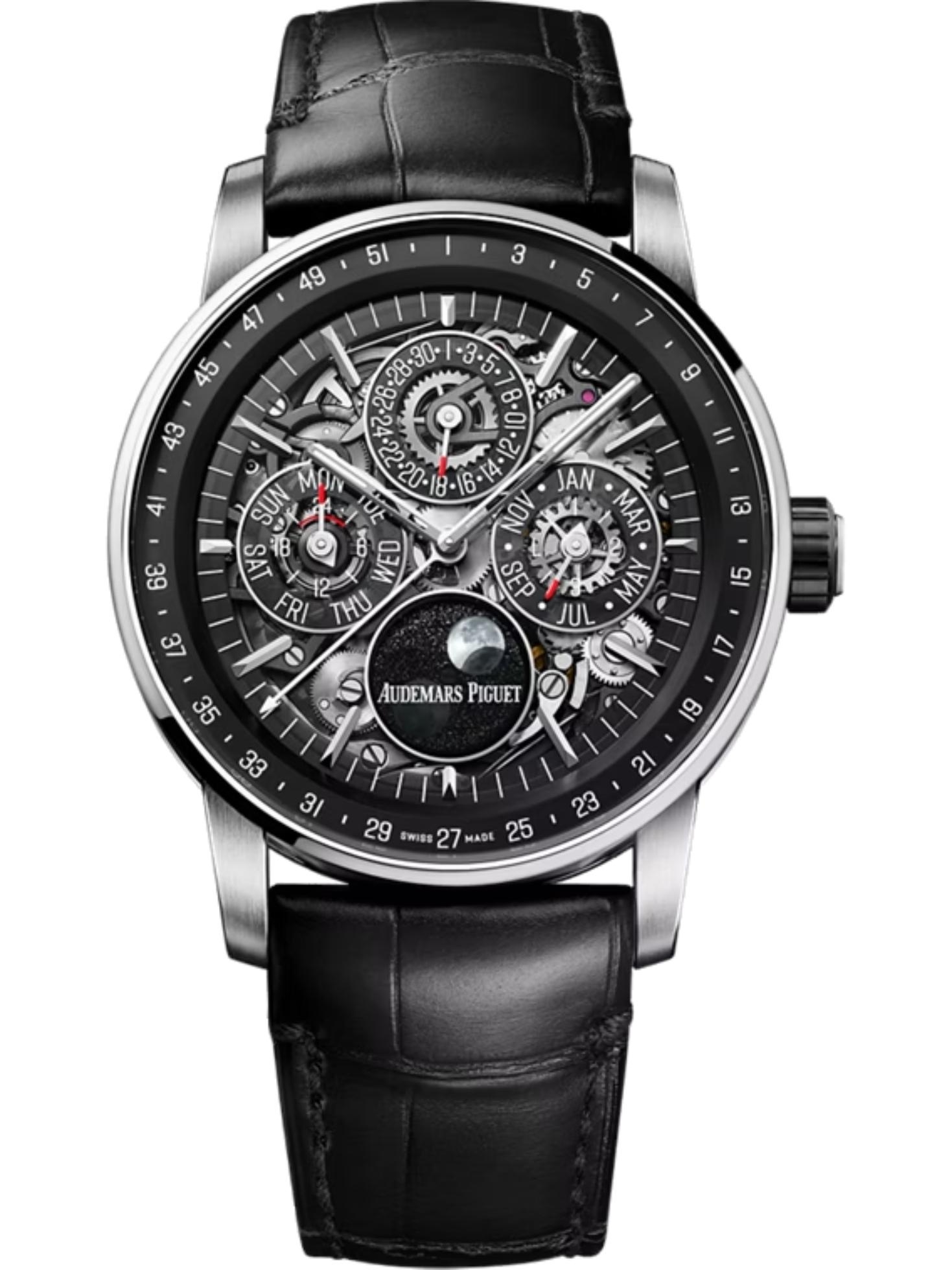 The Audemars Piguet Code 11.59 by Audemars Piguet Perpetual Calendar Openworked 26443NB.OO.D002CR.01 introduces an openworked perpetual calendar configuration within the Code 11.59 collection.