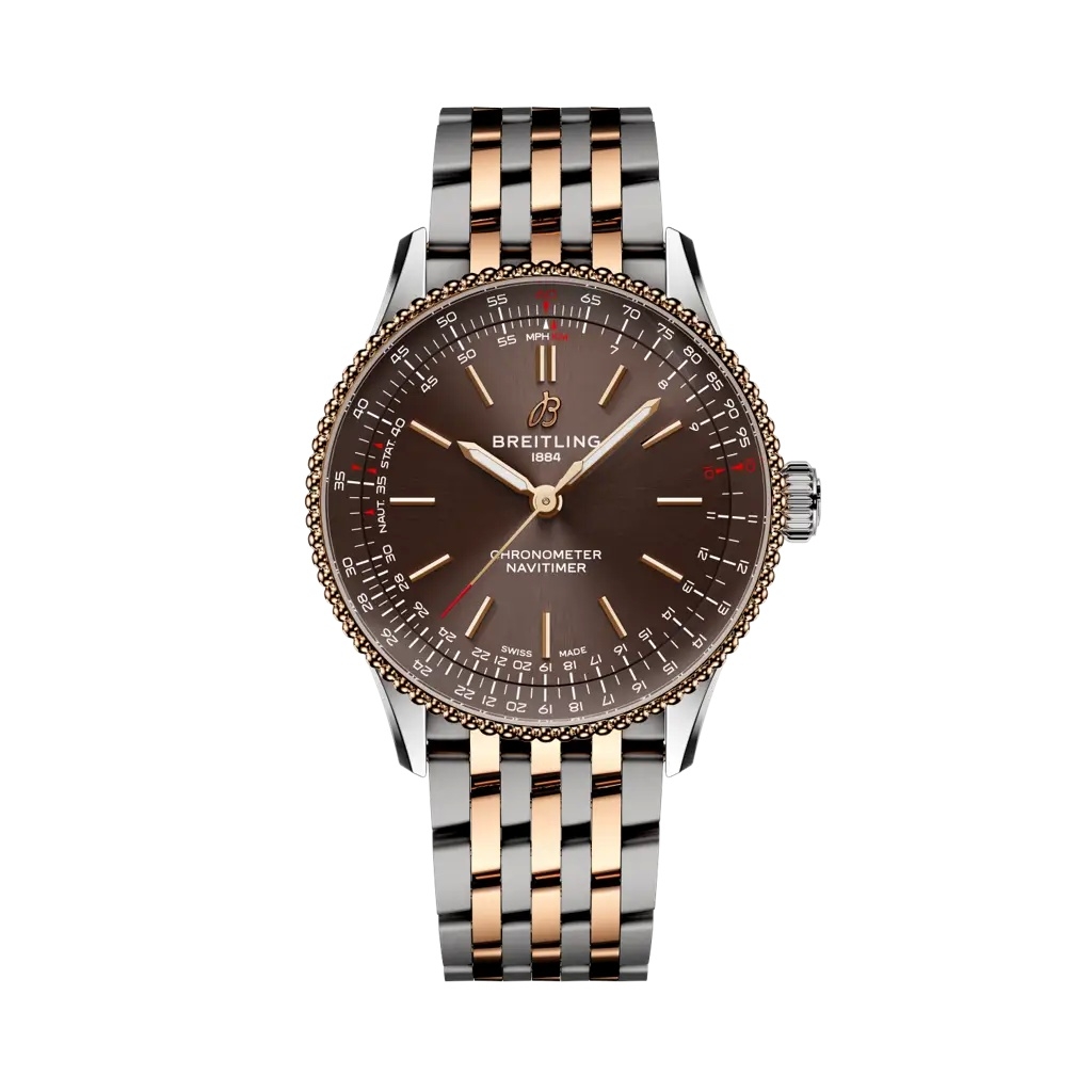 Breitling - U173273A1Q1U1 Navitimer Automatic 36 Stainless Steel - Red Gold / Brown / Bracelet