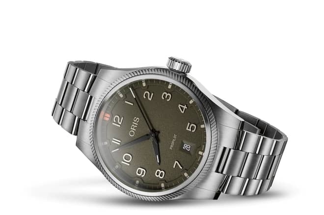 This reference is fitted with a stainless-steel bracelet using the Oris “LIFT” clasp mechanism.