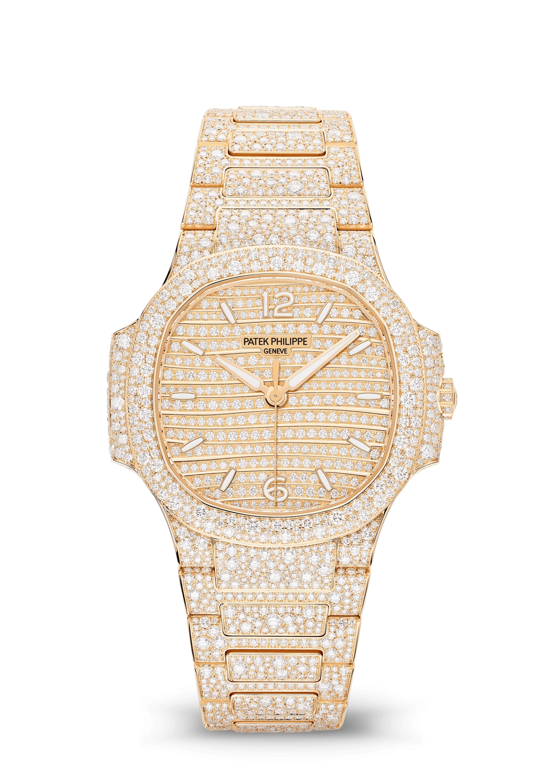 Introduced in 2021, the Patek Philippe Nautilus reference 7118/1450R-001 finds its case, bracelet and dial set with a total of 2553 flawless Top Wesselton brilliant-cut diamonds.